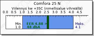 Kaikki Nepura-tuoteperheen laitteet yltävät kovempaan viilennystehoon kuin vastaavat kilpailijansa, joka johtuu suuresta kompressorin koosta. Comfora 35 N kykenee 4.5kw viilennystehoon.