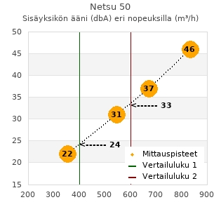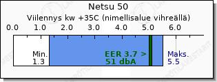 Laitteiden ilmamäärän pisteet poikkeavat toisistaan, joten olemme korostaneet laskennalliset leikkauspisteet Mitsubishi Heavy Netsu 35 vertailun helpottamiseksi.
