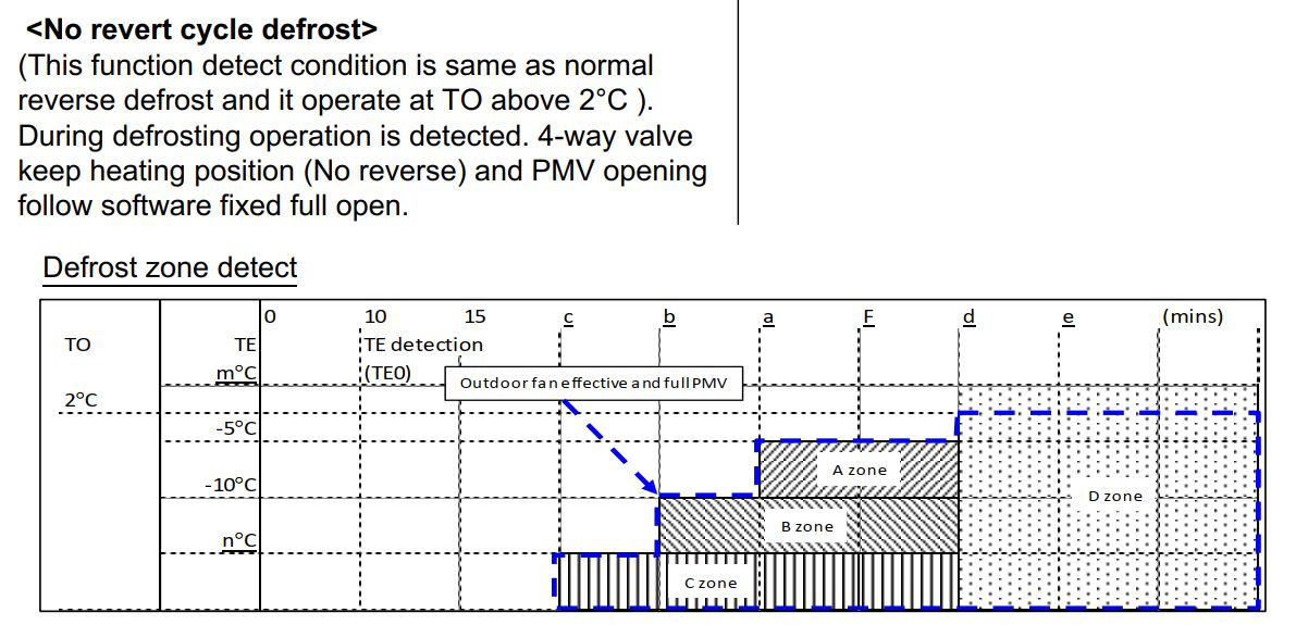 Ulko-yksikön alkavat nimittäin kovassa kuormitustilanteessa jäätymään jo noin +4C alapuolella, koska ulkoyksikössä alkaa silloin esiintymään pistemäisiä pakkasen puolella olevia pintoja. Se voi näkyä esimerkiksi jääpantana lämmönvaihtimen keskivaiheilla.