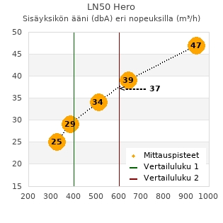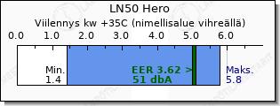 Laitteiden ilmamäärän pisteet poikkeavat toisistaan, joten olemme korostaneet laskennalliset leikkauspisteet Mitsubishi Electric LN35 Hero vertailun helpottamiseksi.