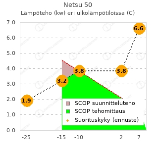 | SCOP -22C ilmastovyöhykkeellä "Helsinki" | LisätiedotJos laitetta käytetään lämmityskauden yli kylmän ilmastovyöhykkeen rakennuksessa kireimmän pakkasen ollessa -22C, voidaan laskea koko vuoden keskimääräinen hyötysuhde.Laitetta ei yleensä käytetä testien tavalla maksimipuhalluksella ympäri vuoden, joten kodissa toteutuva vuosihyötysuhde jää todennäköisesti laskennallista alhaisemmaksi. Helsingin ilmastovyöhykkeen ilmoittaminen ei ole pakollista energiamerkinnöissä, joten tätä lisätietoa ei aina ole saatavilla. |