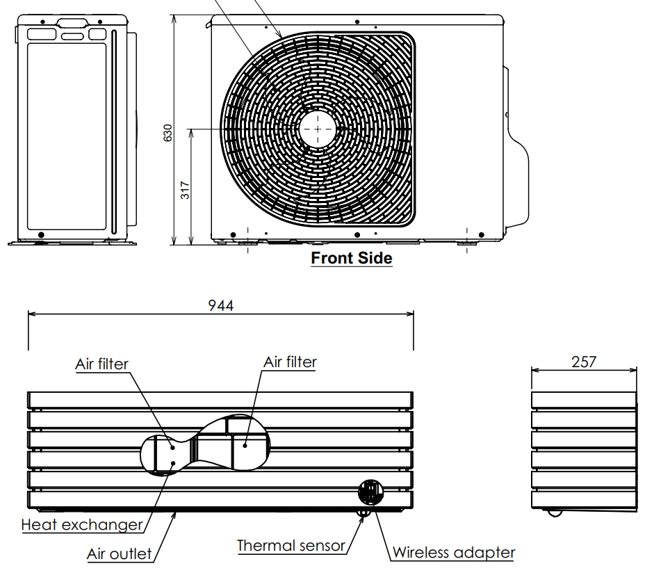 - Ulkoyksikön ilmoitettu äänitaso pätee ainoastaan nimellistehon pisteessä. Min-max ääniä ei mitata tai ilmoiteta.
