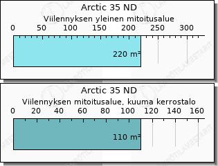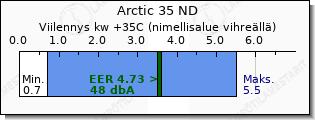 Viilennyslaitteen suurin tehokkuus on mitattu +35C ulkolämpötilassa ja sen perusteella voidaan arvioida, minkäkokoiseen asuntoon teho riittäisi.