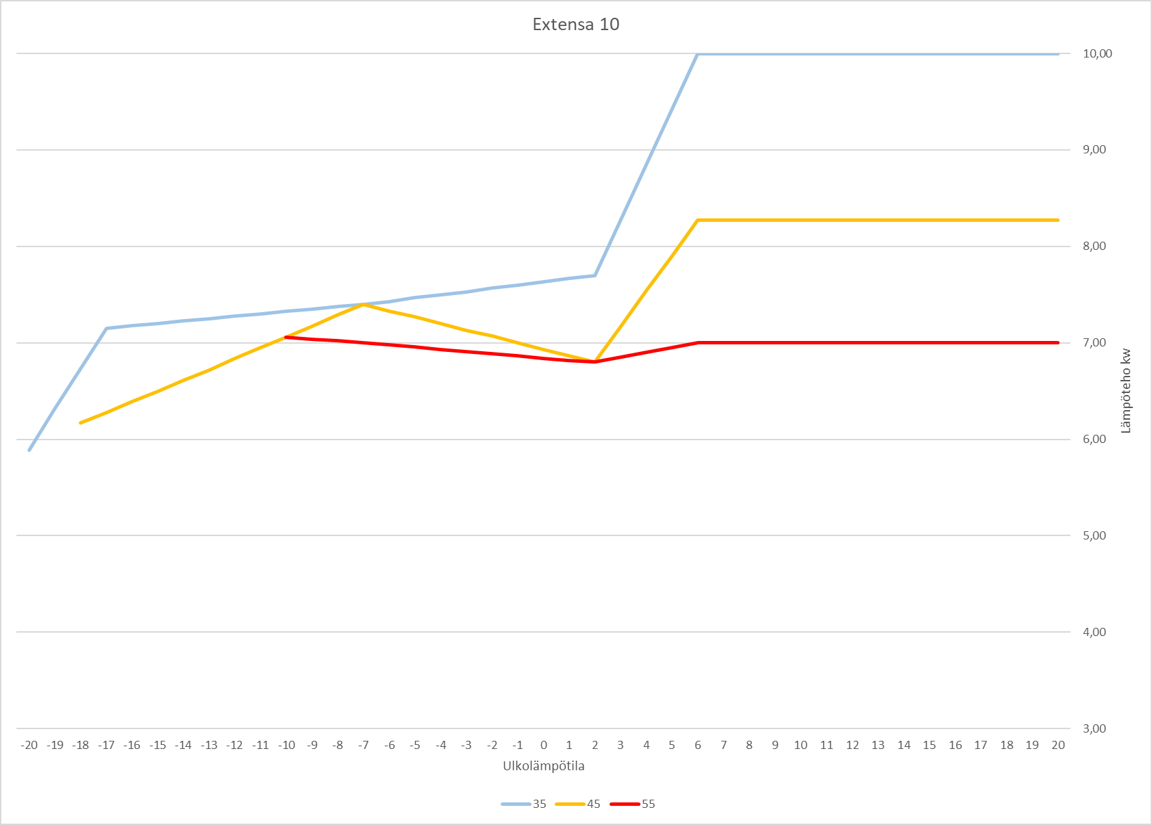 - 8.2kw mitoitusteho 55C patterit (EN 14825 pRated ulkolämpö -10C)