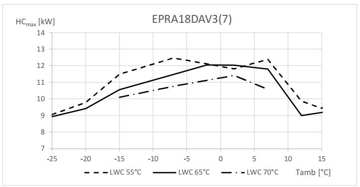 | Mitoittava teho, patterilämmitys Energiatehokkuusmittauksien (EN 14825) rakenneteho pRated. Veden lämpötila 55C, ulkolämpötila -10C |