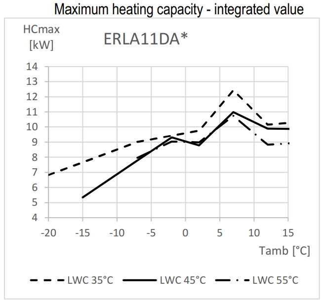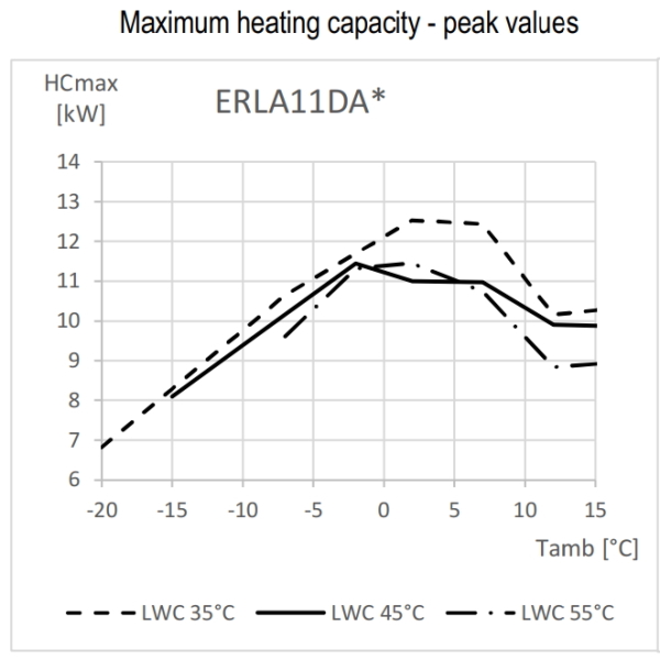 | Mitoittava teho, lattialämmitys Veden lämpötila 35C, ulkolämpötila -10C |