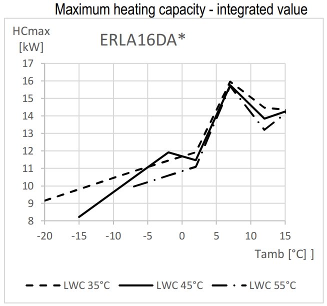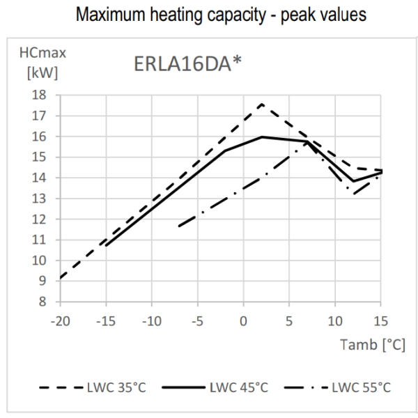 | Mitoittava teho, lattialämmitys Veden lämpötila 35C, ulkolämpötila -10C |