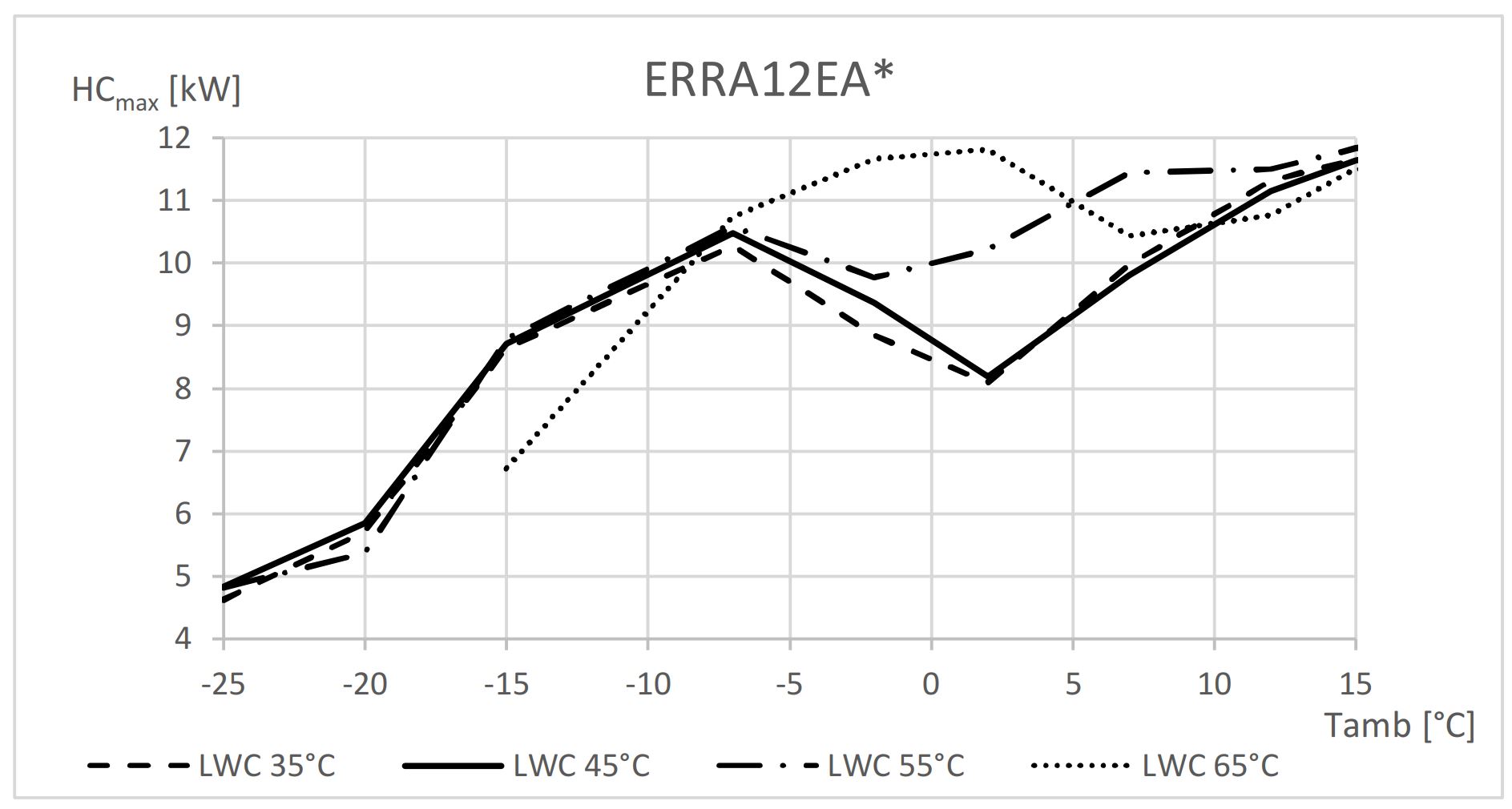 | Mitoittava teho, patterilämmitys Energiatehokkuusmittauksien (EN 14825) rakenneteho pRated. Veden lämpötila 55C, ulkolämpötila -10C |